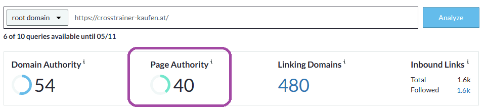 Fakt ist: Die Authority zeigt Nutzern einen Wert zur Orientierung an. Der Wert wird im Rahmen der Skala von 1 bis 100 gemessen. Wobei höher ist in der Regel besser ist.